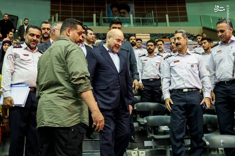 محمدباقر قالیباف رئیس مجلس شورای اسلامی شامگاه جمعه ۶ مهر ۱۴۰۳ در مراسم گرامیداشت روز آتش نشان و بزرگداشت صدسالگی سازمان آتشنشانی تهران که با شعار «رسم پروانگی» در ورزشگاه ۱۲هزار نفری آزادی با حضور آتشنشانان و خانوادههای آنها برگزار شد حضور یافت.
