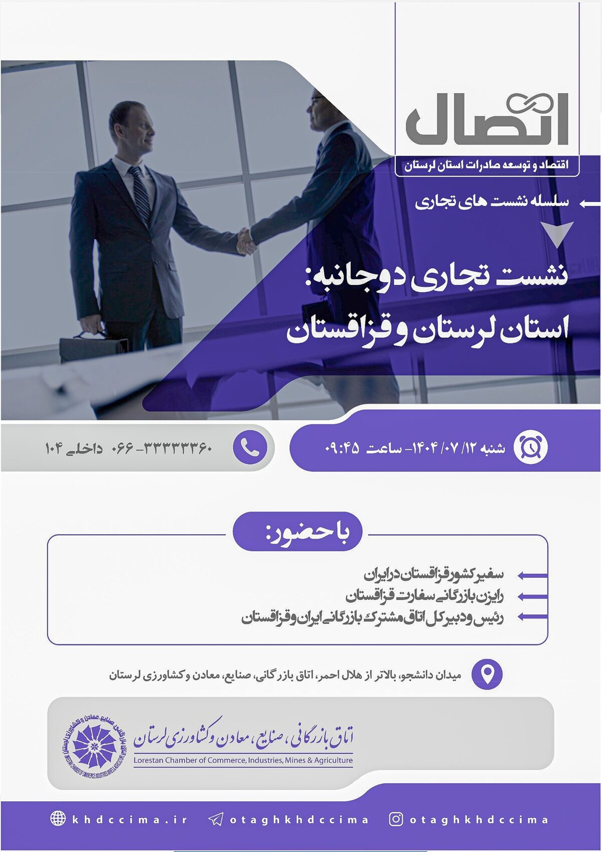 وی ادامه داد: تفاهمنامه همکاری بین اتاق مشترک بازرگانی لرستان و قزاقستان به منظور همکاری در بخشهای آموزشی، توانمندسازی فعالان اقتصادی، معرفی فرصتهای دو کشور و حضور در رویدادهای بینالمللی امضا شد.