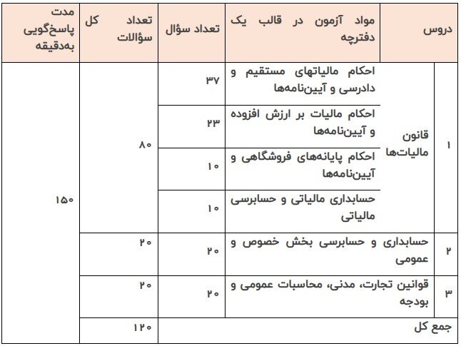 تبصره ماده ۲۸ اساسنامه جامعه مشاوران رسمی مالیاتی ایران: افرادی که فاقد سابقه کار موضوع بند (۶) هستند در صورت گذراندن دوره آموزشی حرفهای و گذراندن دوره کارورزی مطابق دستورالعملی که توسط جامعه مشاوران رسمی مالیاتی ایران پیشنهاد و به تصویب وزیر امور اقتصادی و دارایی میرسد، مجاز به شرکت در آزمون ورودی جامعه مشاوران رسمی مالیاتی ایران هستند.