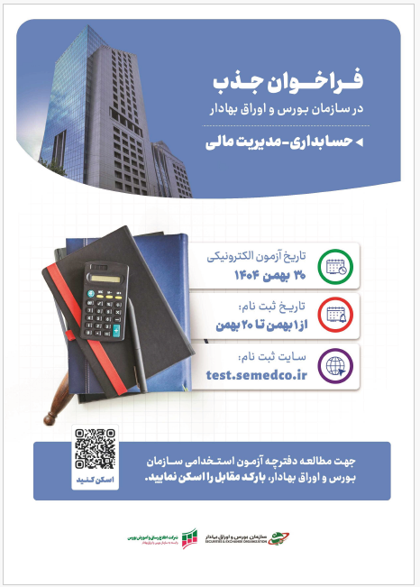 سازمان بورس و اوراق بهادار در سه گروه شغلی حقوق، حسابداری (حسابرسی/مدیریت مالی) از طریق برگزاری آزمون استخدامی، نیروی متخصص جذب می‌کند.به گزارش روابط عمومی شرکت اطلاع‌رسانی و آموزش بورس، این آزمون ویژه متقاضیان دارای مدرک کارشناسی و بالاتر در رشته‌های مندرج در دفترچه فراخوان و با حداکثر سن ۴۰ سال است که در روز پنجشنبه ۳۰ بهمن‌ماه سال جاری در مرکز آزمون دانشگاه علوم پزشکی ایران برگزار خواهد شد.